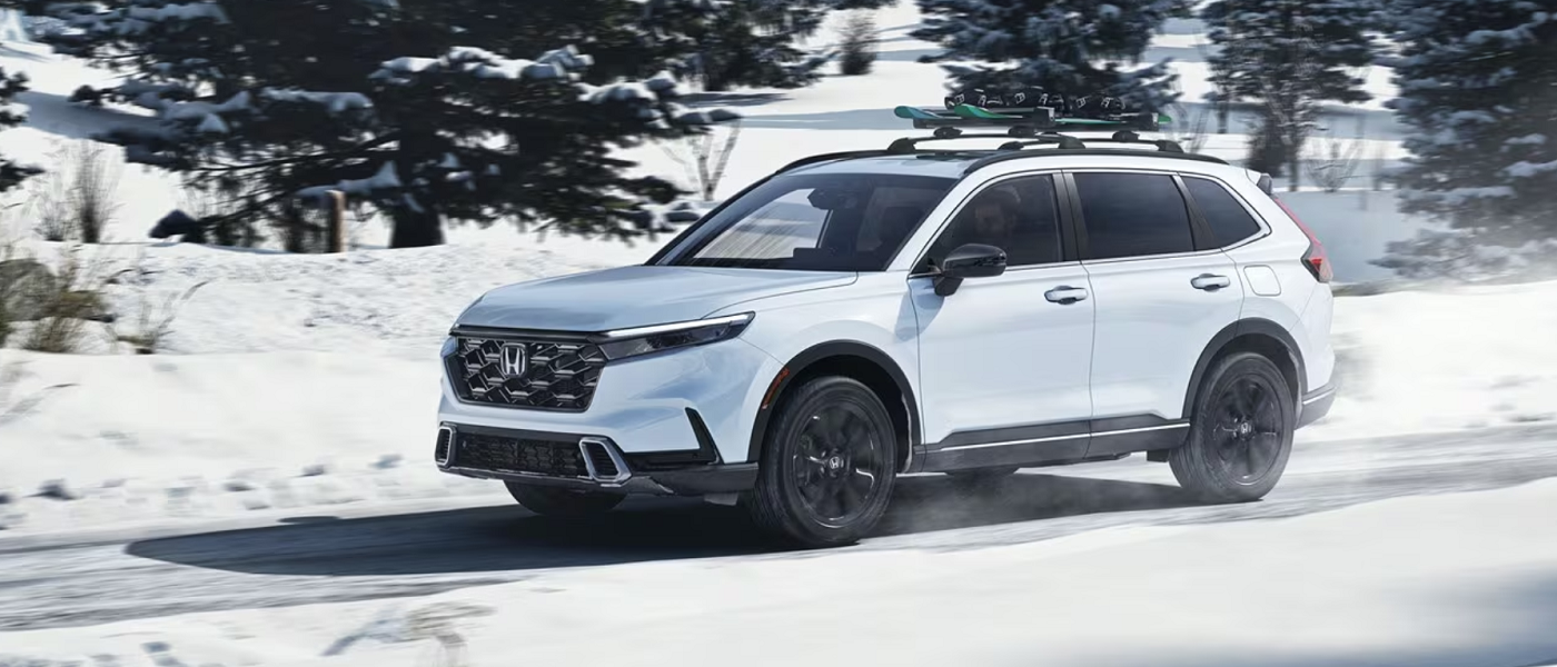 When you’re making your way up Route 125, you’ll be showcasing the 18-inch Gloss-Black alloy wheels that the 2025 CR-V Hybrid wears as its standard units. At the same time, if it’s an evening trip that you’re indulging in, then the standard Full LED headlights will keep your visibility intact. Upon arriving at your destination, dismounting your cargo from the standard roof rails will be easy, and much the same can be said for getting items out of the rear of the vehicle should you spring for the available power tailgate option.